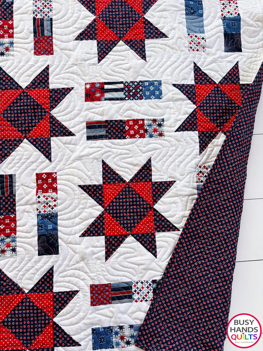 Handmade Stars and Stripes Throw Quilt in Picadilly