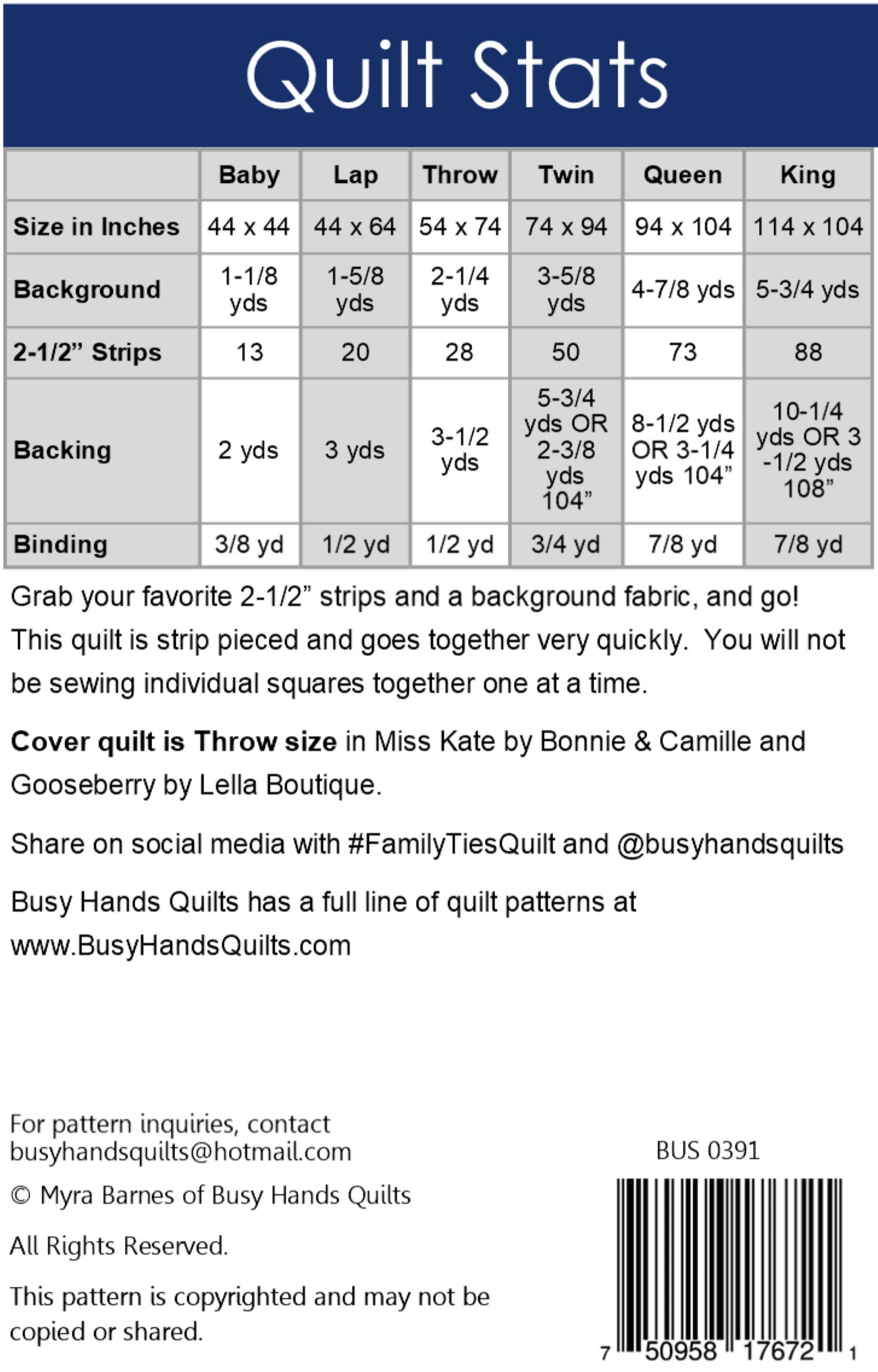 Quilt Kit Includes: