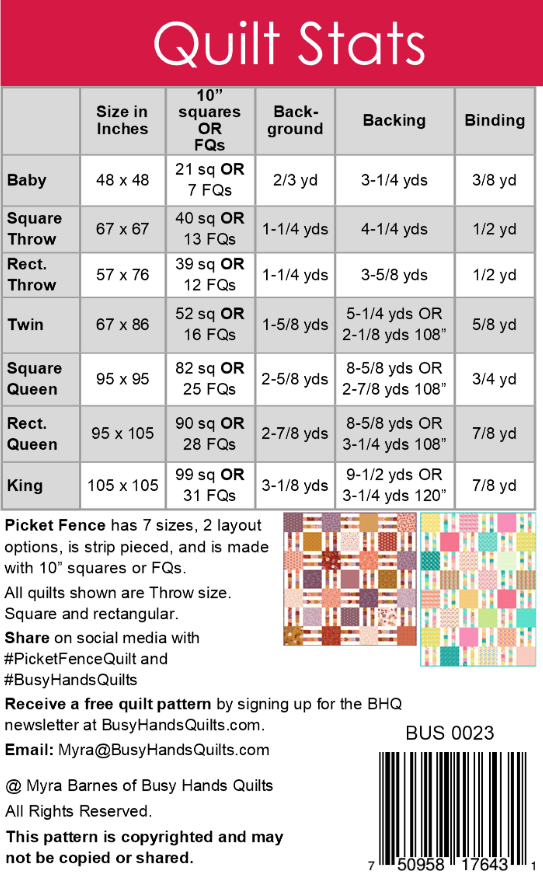 Picket Fence Quilt Pattern PRINTED