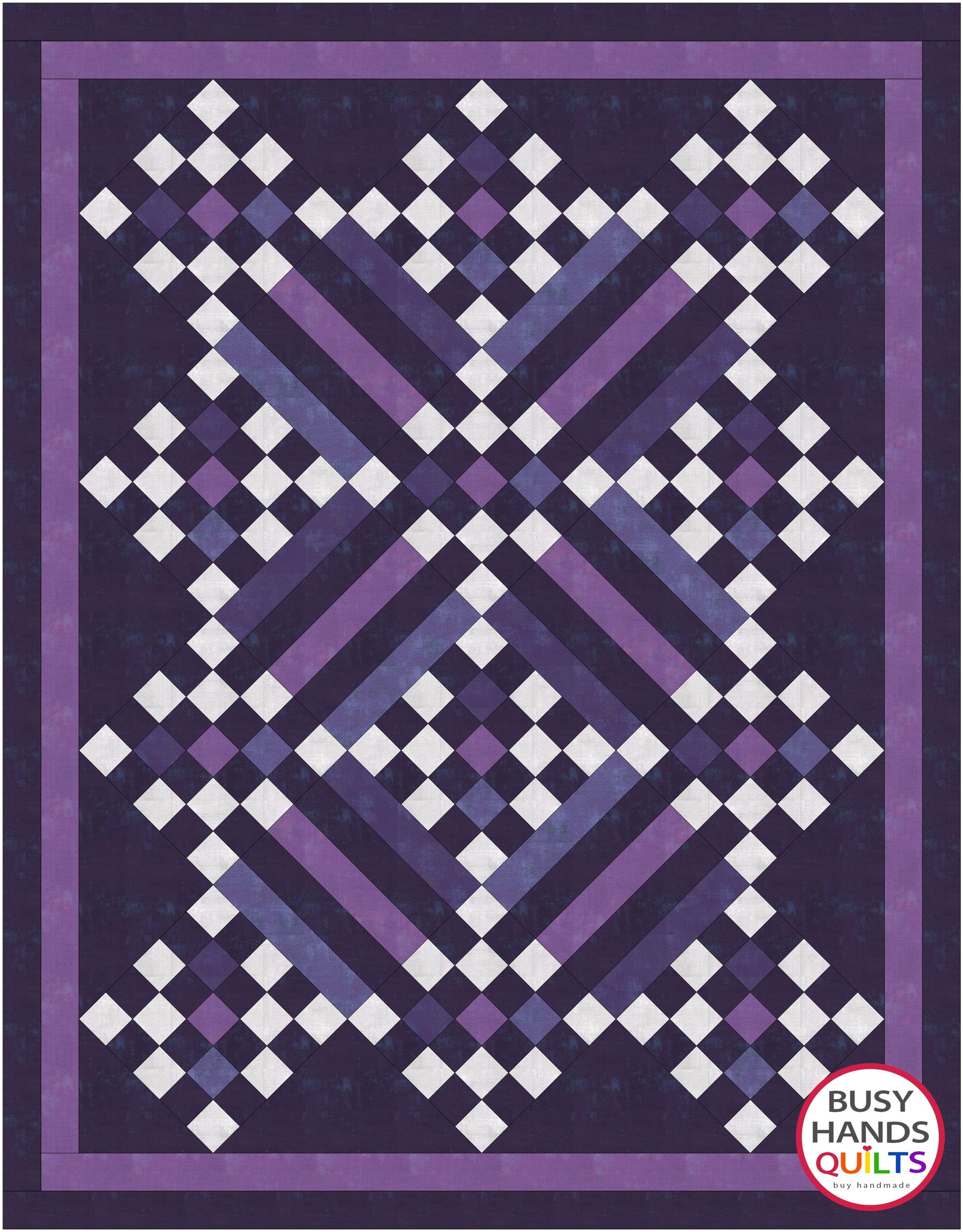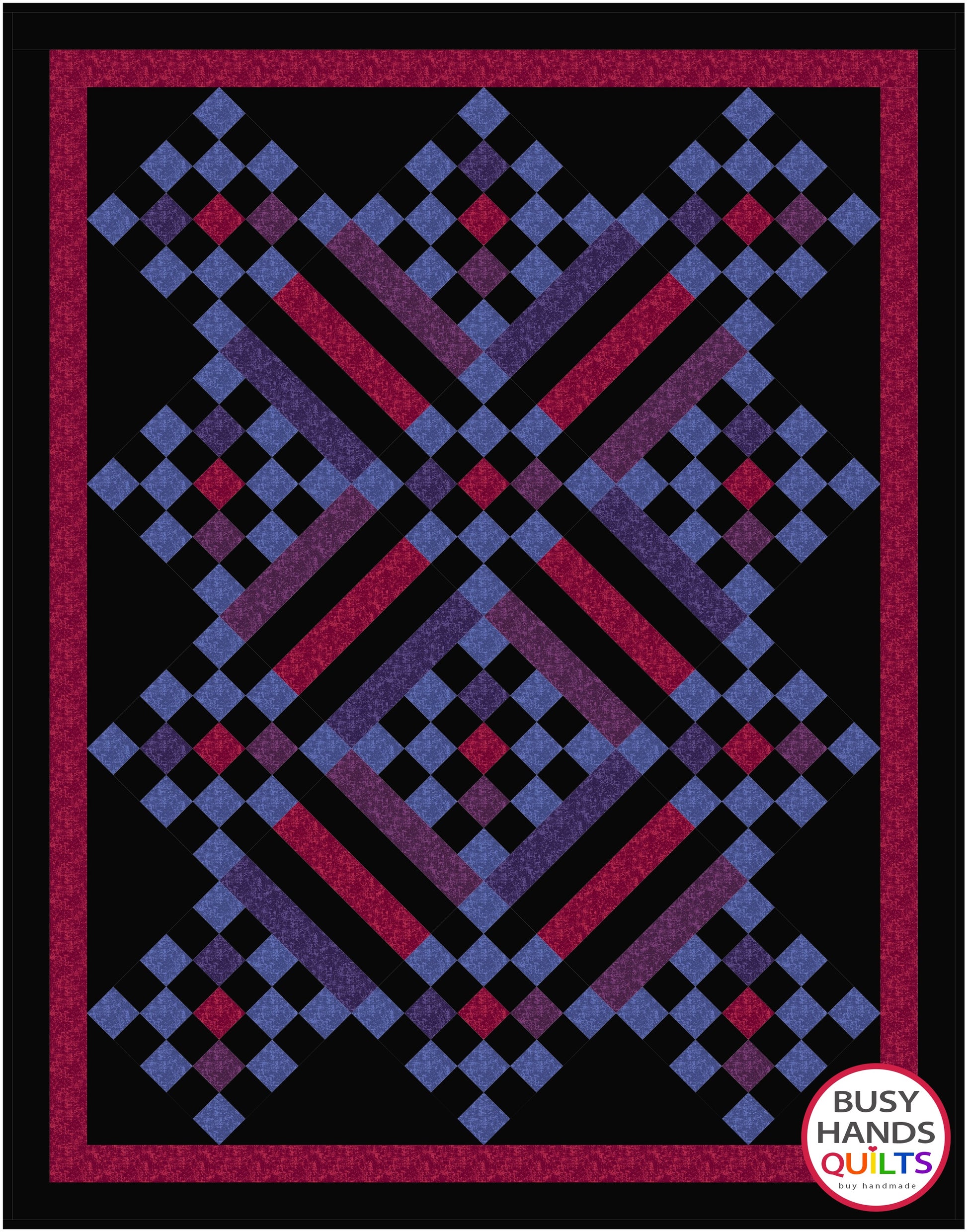 Sweet Caroline II is a striking design made with patchwork and stripe quilt blocks. This is a multi-sized quilt pattern that includes Lap, Throw, Twin, Queen, and King sizes. The Twin size is the Throw size with a wider border added.